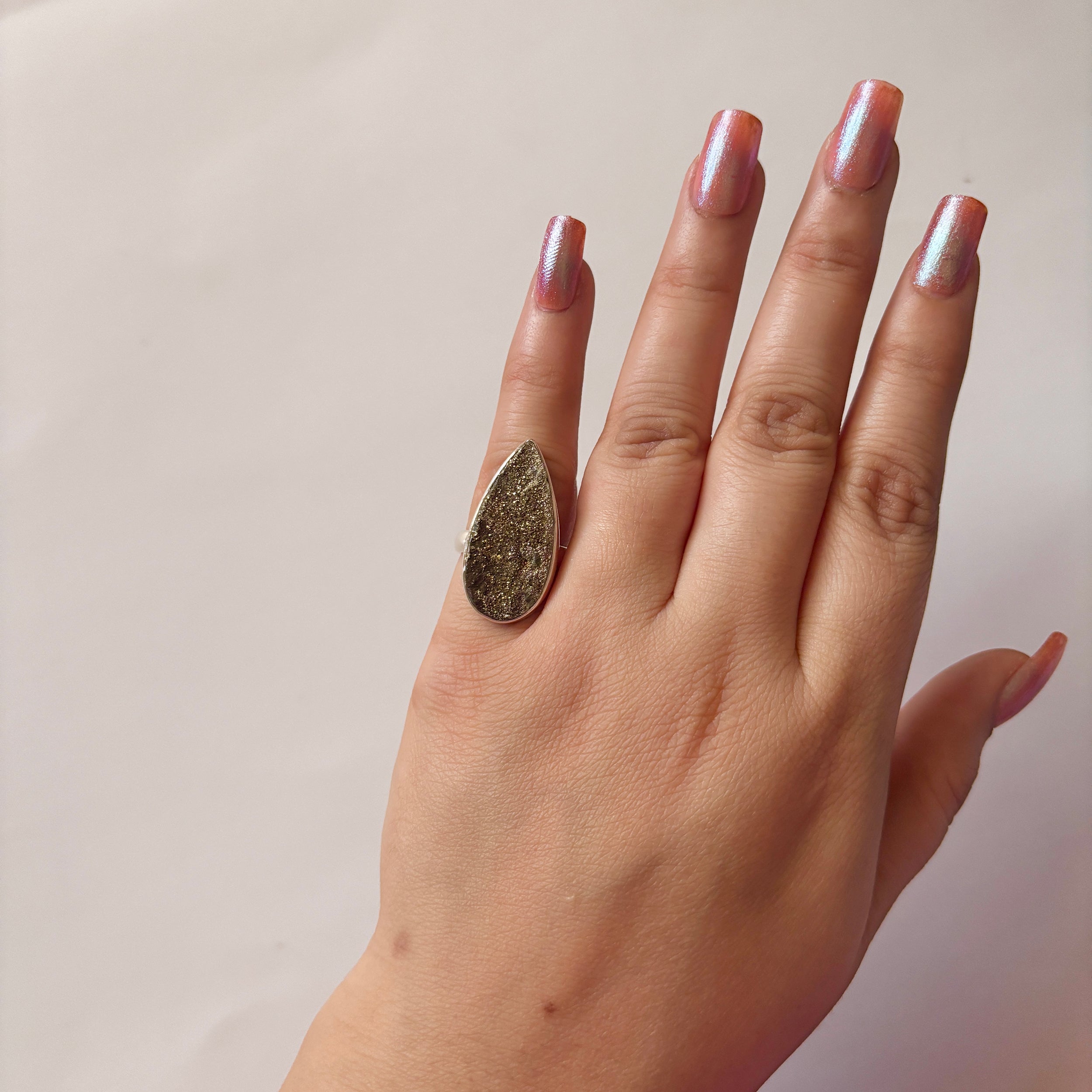 Spectropyrite Druzy Ring