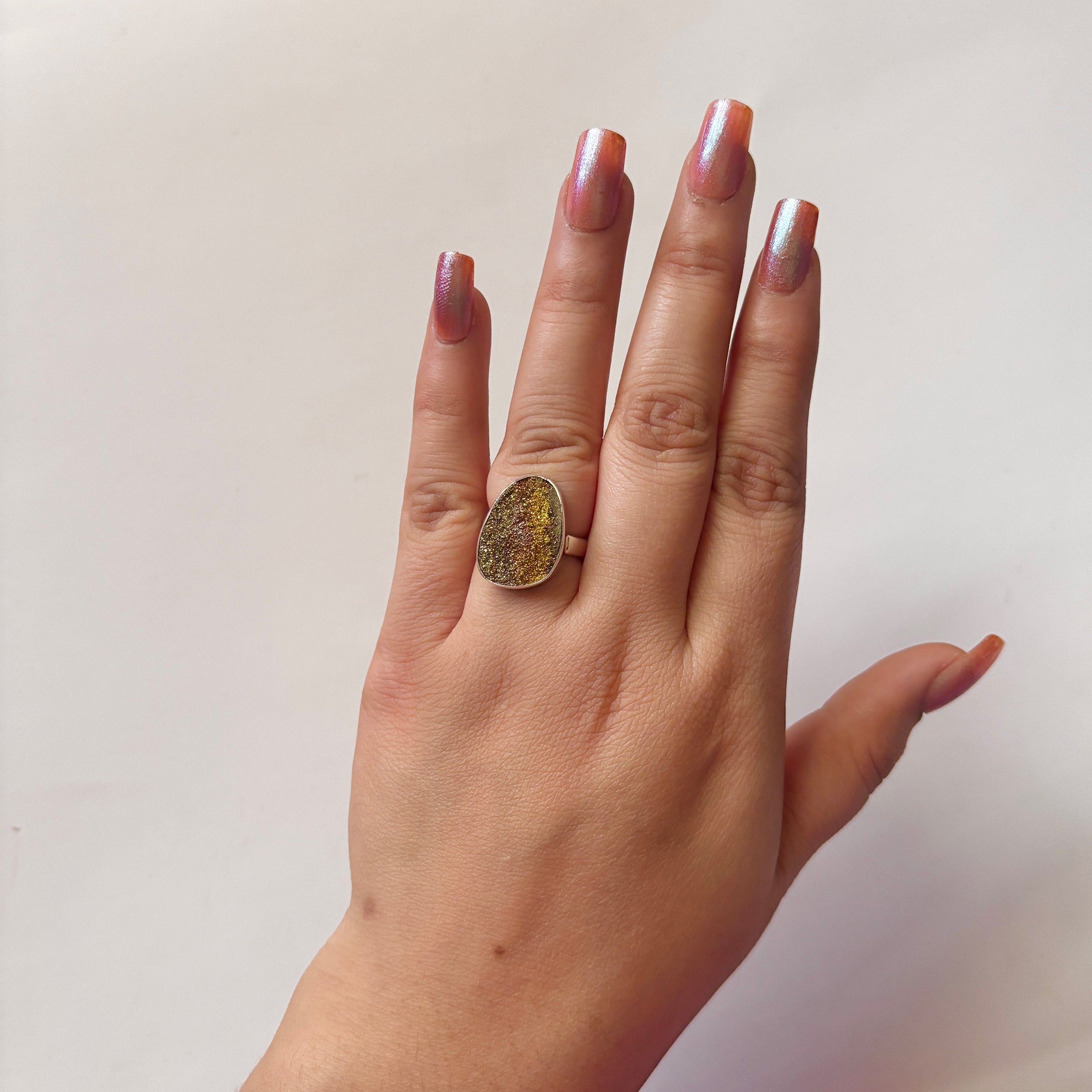 Spectropyrite Druzy Ring